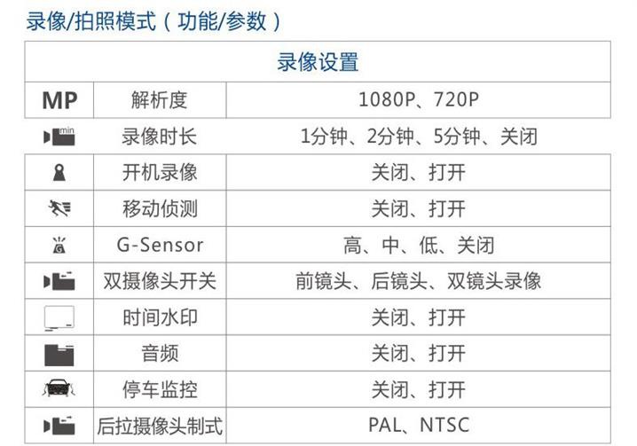 人性化設(shè)置:可選前鏡頭錄像、倒車(chē)鏡頭錄像、雙鏡頭同時(shí)錄像