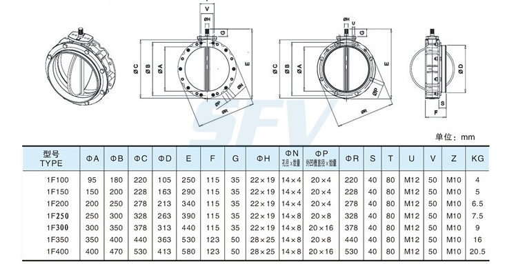 氣動(dòng)水泥蝶閥安裝尺寸: