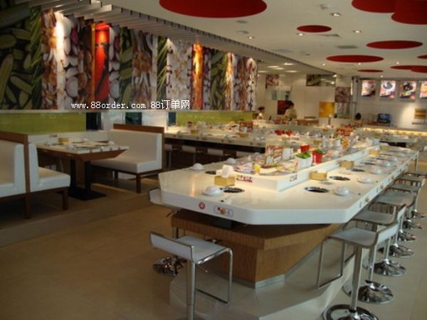 回轉(zhuǎn)設(shè)備可根據(jù)餐店使用面積及客戶要求進(jìn)行設(shè)計(jì),我公司設(shè)備傳動(dòng)系統(tǒng)采用密封式設(shè)計(jì),輸送連帶結(jié)構(gòu)嚴(yán)謹(jǐn),運(yùn)行安全平穩(wěn),符合食品衛(wèi)生要求?梢怨(jié)省人力物力,客人在各自的座位上可隨意選擇擺放在輸送帶上的食物,無(wú)需服務(wù)員送上,同樣回轉(zhuǎn)輸送設(shè)備以其美觀、時(shí)髦、新奇、動(dòng)感吸引著更多的顧客,使青少年所青睞。