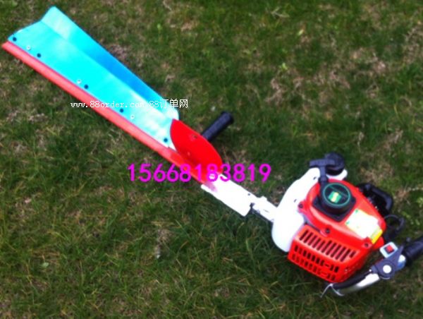 一般說的綠籬機(jī)是指依靠小汽油機(jī)為動力帶動刀片切割轉(zhuǎn)動的,目前綠籬機(jī)分單刃綠籬機(jī),與雙刃綠籬機(jī)。如右圖為單刃綠籬機(jī)。
