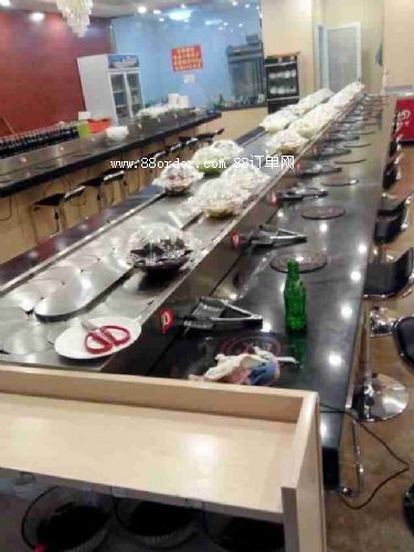 使用回轉(zhuǎn)火鍋設(shè)備不需設(shè)大廚房,透明式操作,整個配制、加工過程,都由顧客自己在餐桌上完成的。