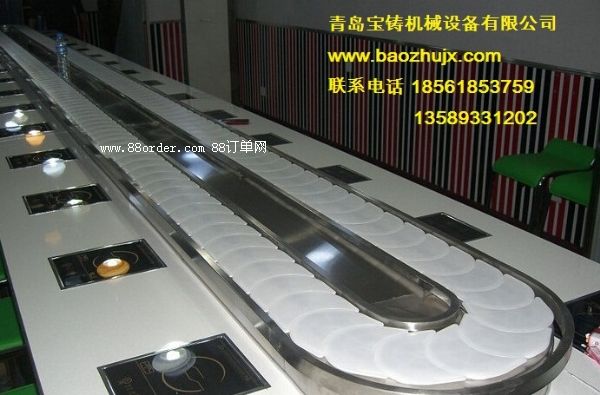 青島寶鑄機(jī)械設(shè)備有限公司是一家專門生產(chǎn)回轉(zhuǎn)火鍋設(shè)備,以設(shè)計(jì)、加工、銷售、售后服務(wù)為一體的綜合性加工企業(yè)。本公司有一批從事設(shè)計(jì)研發(fā)制造回轉(zhuǎn)設(shè)備的資深的工程師及優(yōu)秀的裝配人員,能夠根據(jù)客戶的要求以及店面的實(shí)際情況設(shè)計(jì)并生成各種具有特殊工藝的回轉(zhuǎn)輸送設(shè)備,除此之外為了提高產(chǎn)品質(zhì)量,回轉(zhuǎn)輸送設(shè)備核心部分:鏈板、鏈條、軌道、100%進(jìn)口尼龍材料、優(yōu)質(zhì)不銹鋼材料、動(dòng)力系統(tǒng)采用臺(tái)灣進(jìn)口電機(jī),在出貨之前進(jìn)行多項(xiàng)質(zhì)量檢驗(yàn),以確保設(shè)備能夠穩(wěn)定工作。
