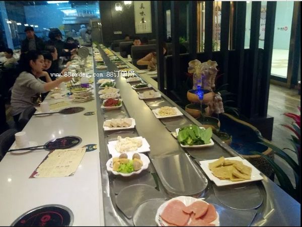 階梯雙層設(shè)計、定時廢棄系統(tǒng)、過橋技術(shù)、碗碟回收系統(tǒng)等等,最大限度提升消費者的體驗,加深對壽司店的印象,從而增加回頭率、提高收益。旋轉(zhuǎn)火鍋設(shè)備店倡導“美味健康、花錢少”的經(jīng)營理念,