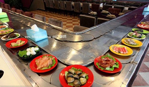 冬天用在火鍋,夏天用在壽司,只要用特制的不銹鋼蓋板封住餐桌上的爐孔即可成為壽司輸送設(shè)備,既實(shí)惠又方便,讓您體現(xiàn)經(jīng)營壽司和火鍋的樂趣,又便于客人在各自的座位上可隨意選擇擺放在輸送帶上的食品,無需服務(wù)員送上。