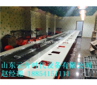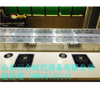 7、具有兩用的優(yōu)點(diǎn),冬天用在火鍋,夏天用在壽司,只要用特制的不銹鋼蓋板封住餐桌上的爐孔即可成為壽司輸送設(shè)備,體現(xiàn)經(jīng)營(yíng)壽司和火鍋的樂(lè)趣,又便于客人在各自的座位上可隨意選擇擺放在輸送帶上的食品,無(wú)需服務(wù)員送上。