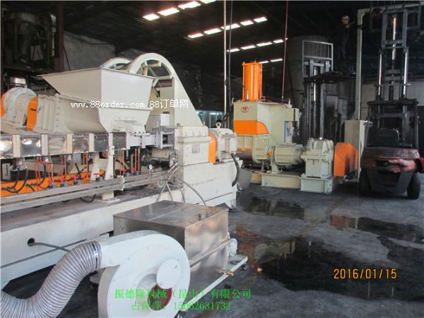 條料生產(chǎn)線成本不高,操作簡便,且清洗便捷。這對(duì)色料配混來說有其優(yōu)點(diǎn),因?yàn)閮膳煌系母鼡Q必須徹底清洗設(shè)備。但是,造條方法的缺點(diǎn)是冷卻段需占用空間,其長度按聚合物的溫度要求來確定。