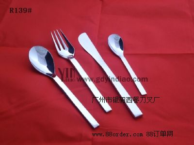 各種不銹鋼餐刀,餐勺,湯勺,牛油刀,牛排刀,水果叉,蛋糕叉,咖啡更,茶更,糖更,雪糕更等。產(chǎn)品選用