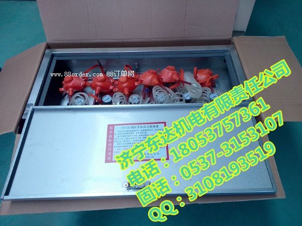 zyj(a)型礦井壓風(fēng)(供水)自救裝置,本裝置一箱六組(可根據(jù)要求設(shè)計(jì)組別),能同時(shí)提供六人使用,達(dá)到互相照顧的效果。該裝置由箱體、安裝板、進(jìn)氣管、進(jìn)水管、凈水過濾器、門鎖、呼吸器(多組)、排水裝置(多組)等組成。箱體、安裝板、總進(jìn)氣管、總進(jìn)水管采用不銹鋼制造而成。