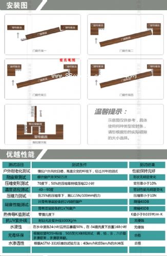 包覆式密封條在耐老化、耐疲勞、壓縮變形測(cè)試、壓縮力測(cè)試、熱傳導(dǎo)k值測(cè)試、水侵性、水滲透性等測(cè)試中均取得超越所有傳統(tǒng)產(chǎn)品的優(yōu)秀的結(jié)果;同時(shí)包覆式密封條節(jié)能環(huán)保、隔音降噪、抗強(qiáng)紫外線,無毒、不與任何油漆、清潔劑發(fā)生反應(yīng),迎合新時(shí)代綠色健康主題。