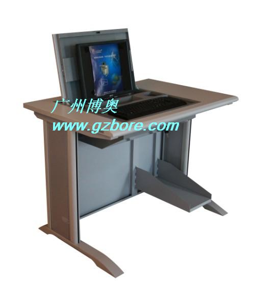 結(jié) 構(gòu):使用時(shí)只要打開鎖,液晶顯示屏便會(huì)自動(dòng)翻起,鍵盤也同時(shí)自動(dòng)打開。當(dāng)不使用時(shí),可用手動(dòng)按下翻蓋面板。整個(gè)翻轉(zhuǎn)器與桌面齊平,產(chǎn)品具有防塵保持桌面平整,美化桌面等功能。電腦主機(jī)位置有鎖上,可防盜,