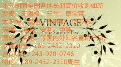 另外本公司還面向全國(guó)各地長(zhǎng)期高價(jià)收購(gòu)如新、羅麥、無(wú)限極、三生、康寶萊、太陽(yáng)神、富迪、玫琳凱、優(yōu)莎娜、天獅、完美、安利、中脈、國(guó)珍、寶健、等國(guó)內(nèi)外知名直銷產(chǎn)品。