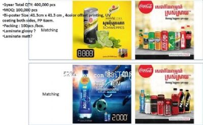 現(xiàn)需采購塑料海報,尺寸:41.3*41.3cm;材質(zhì):塑料,兩個款式,雙面印刷不一樣的圖案,數(shù)量各5萬個,年訂單:40萬,能做的工廠請v