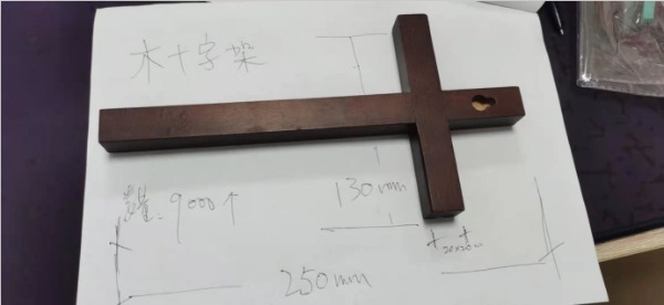 采購(gòu)櫸木十字架250*130*20mm;中間開(kāi)槽5*5mm;表面噴漆處理,不含稅貨送東莞