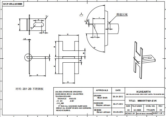 求購 201不銹鋼鈑金加工2000套(2b表面,3張圖)