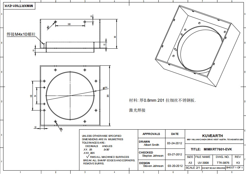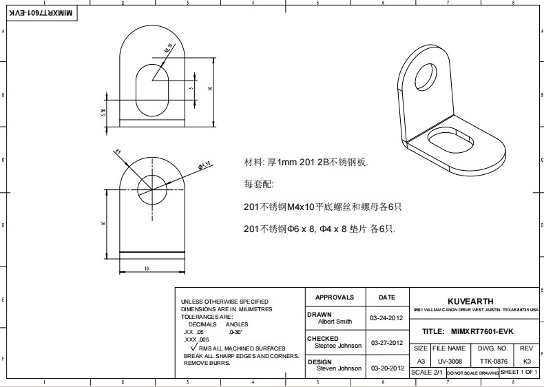 求購 201不銹鋼鈑金加工a 2400套(見附圖,共4張)
