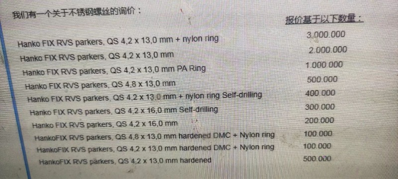 - 訂單名稱:不銹鋼螺絲