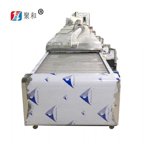 通過(guò)式超聲波噴淋清洗線設(shè)備清洗不銹鋼/鋁制面包蛋糕烘盤烤盤