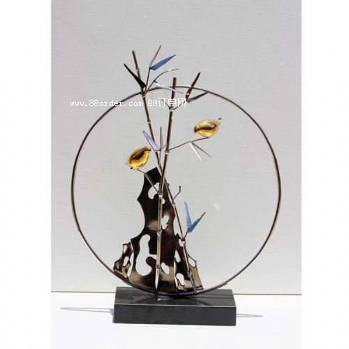 不銹鋼雕塑黃銅鳥擺件飾品-山竹三