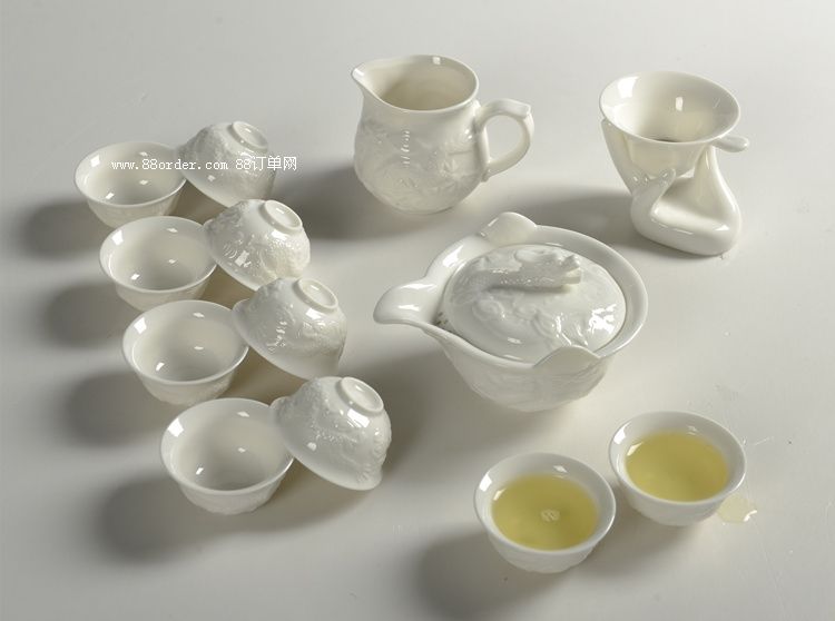 浮雕龍紋泡茶白玉瓷功夫茶具